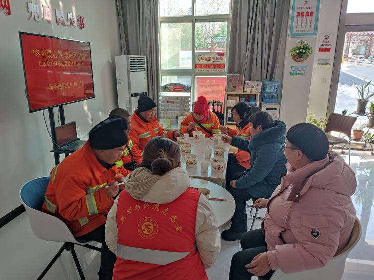 近日的天气已进入入冬以来气温最低的气候,尽管户外“冻人”,我们的环卫工人依旧起早贪黑用实际行动,坚守岗位维护大街小巷环境卫生干净整洁。12月21日,新华路街道桐和社区工会开展“冬至爱心饺 浓浓环卫情”社区爱心驿站送温暖献爱心活动。