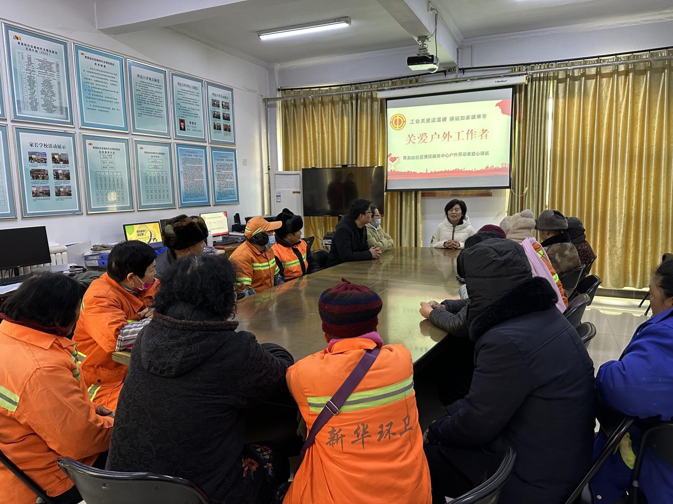 12月27日上午,育英街社区爱心驿站为辖区户外劳动者发放寒冬“暖心包”。一句问候、一双手套、一顶帽子......精心准备的暖心包,为在凛冽寒风中工作的户外工作者带来一份工会关怀。活动中,驿站负责人焦海玲向在场的环卫工人发出了诚挚邀请:“冬季到了,希望你们常来这里歇歇脚,喝杯热水。”