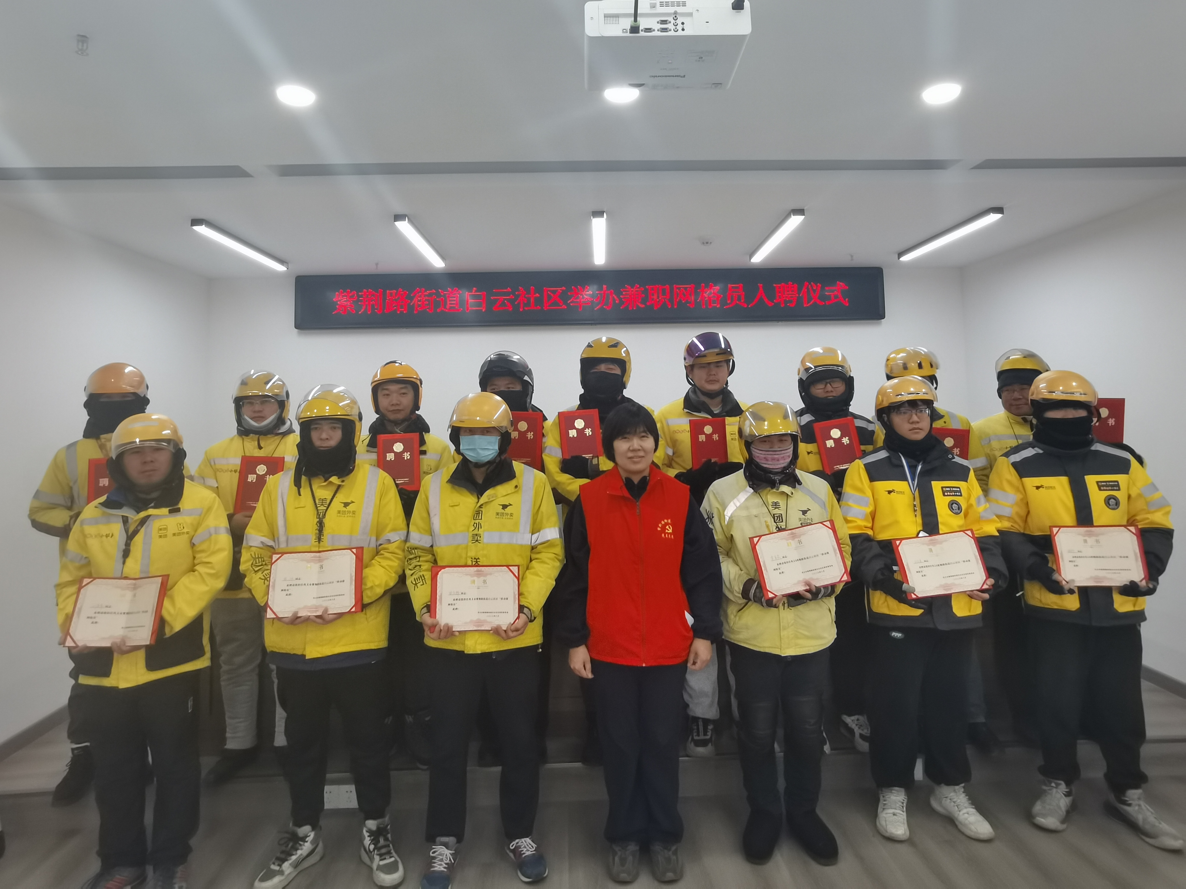 近日,在白云社区新时代文明实践站,该社区支部书记王婵婵为新增“兼职网格员”群体举办聘任仪式并发放聘书,鼓励引导外卖小哥担任民情收集员。社区通过搭建“网格员+外卖小哥”的共治平台,有效发挥外卖骑手在基层治理中流动“哨兵”和移动“探头”的作用。自社区成立“移动微网络员之家”以来,移动微网格员数量不断扩充壮大。