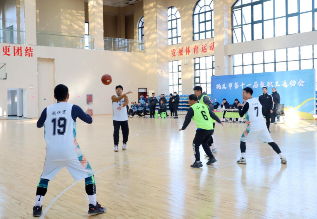 赛场上,参赛选手一个个生龙活虎,运球、传球、上篮、远投、拼抢,技巧娴熟,动作到位;在综合馆一楼,42支代表队分成14组,分别参与了12人集体跳长绳和8字绕绳项目,比赛时间为2分钟,每队抡绳的老师把大绳抡得呼呼作响并富有节奏,10名跳绳的老师动作整齐划一、配合默契。