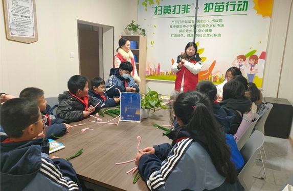 活动伊始,社区“扫黄打非”志愿者向孩子们普及了“扫黄打非”与“护苗”小常识、未成年人保护工作的内容,教会他们如何辨别盗版书籍、有害书籍等,加深青少年对“扫黄打非”知识的认识与理解,提升“黄”“非”的辨别能力和自我保护意识。