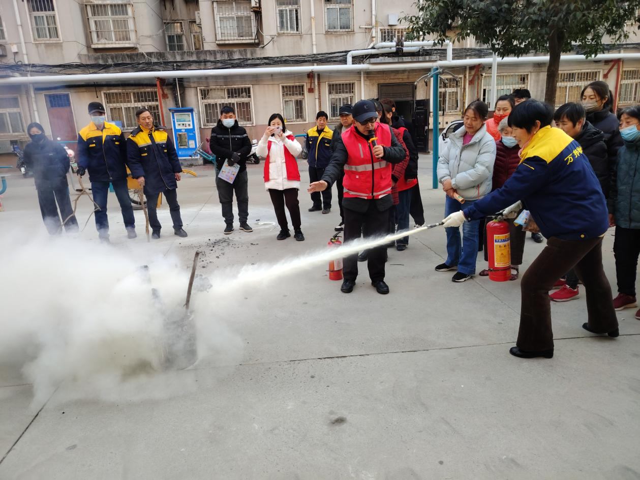 在火灾扑救演练环节,大家在路老师的指导下使用干粉灭火器对模拟着火点进行灭火演练,通过实际操作,辖区居民掌握了正确的使用方法,丰富了消防知识的同时增强了灭火本领。活动期间,社区工作人员和志愿者们还向参加活动和过往的居民们发放消防知识宣传手册、冬季家庭防火手册,提高居民消防安全意识。