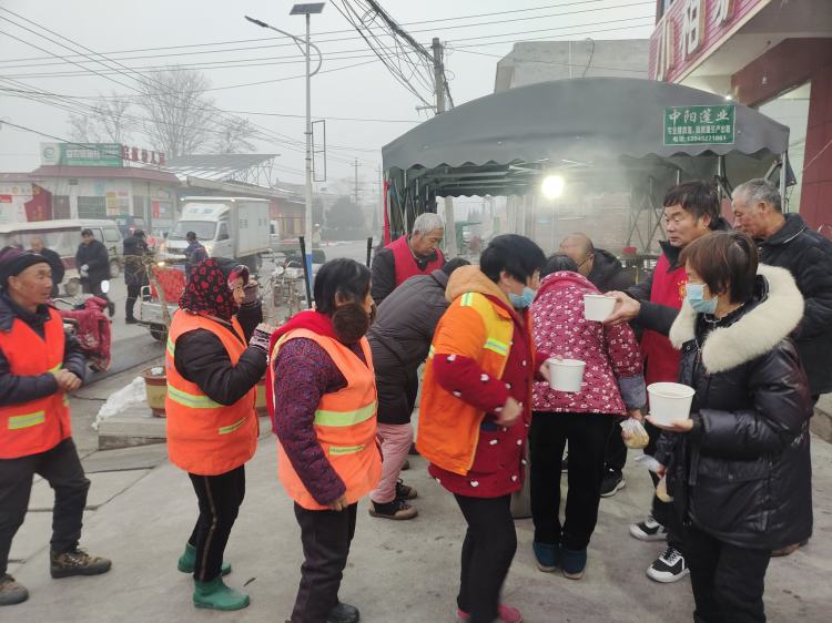 “今天这天儿是够冷的,镇工会组织我们喝上一碗腊八粥,吃上一顿热乎的早餐,手也热乎脚也热乎,最主要的是心里热乎呀。”环卫工张大姐由衷地感叹。