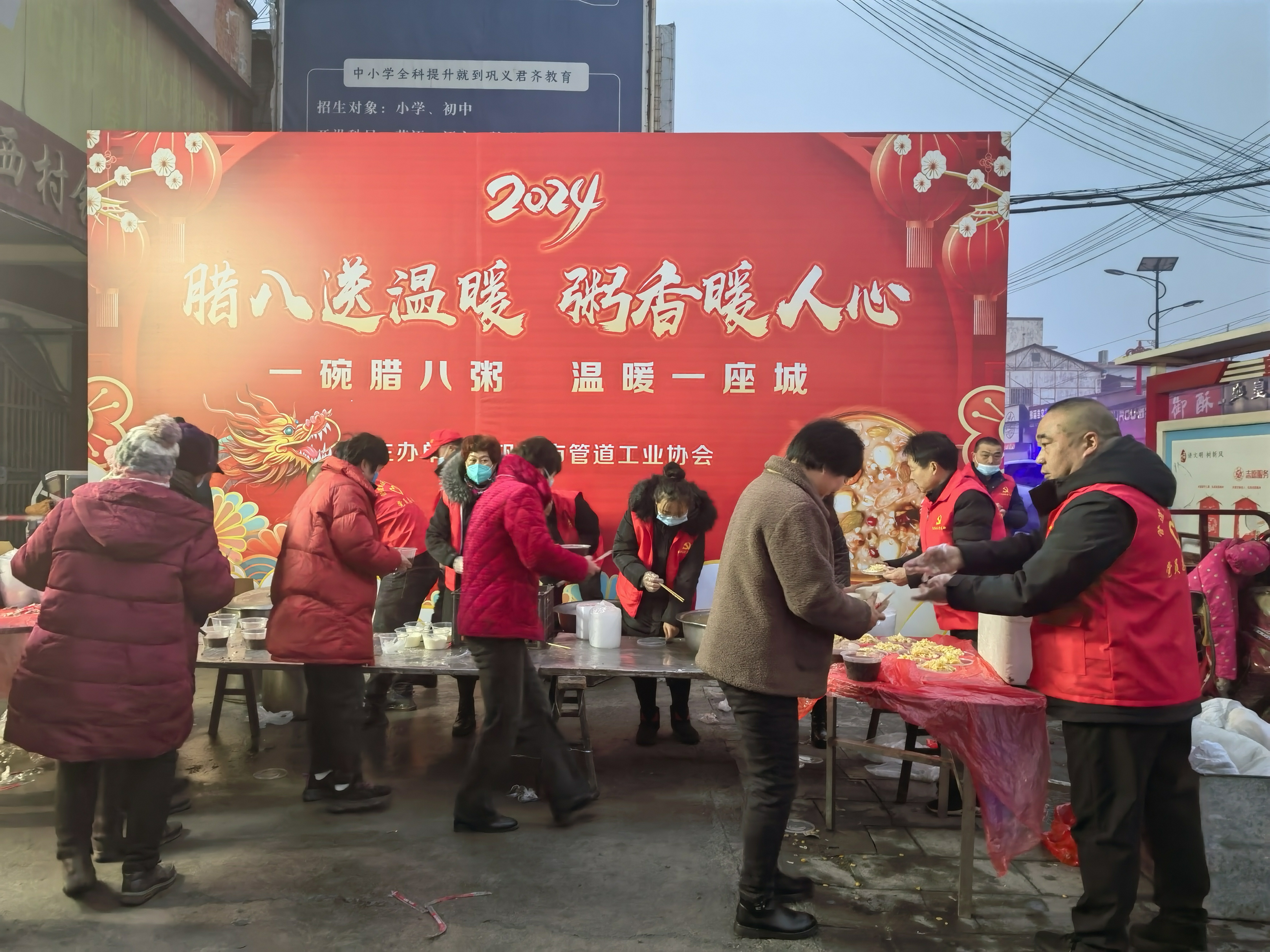 1月18日腊八节,西村镇组织各村、镇工会等部门、管道工业协会等社会团体,开展“腊八送温暖 粥香暖人心”活动。