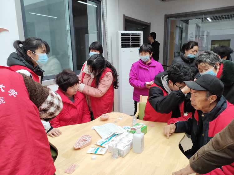 河南中医药大学护理学院副院长刘玲霞老师带领该院师生团队一行30余人来到新兴家园三区日间照料中心义诊活动地点。