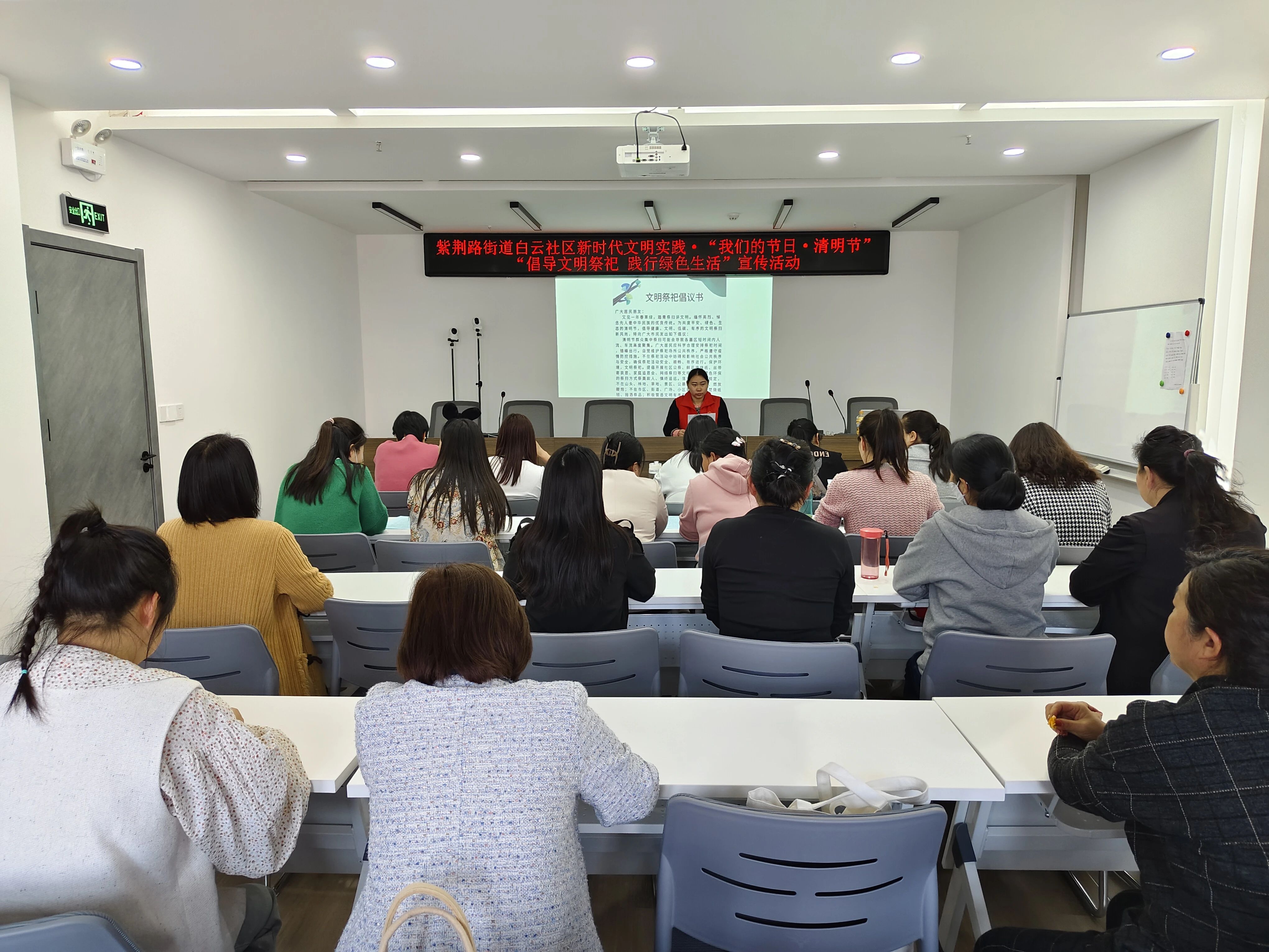 清明节来临之际,为引导辖区居民自觉摒弃陋习、文明祭扫,推动移风易俗,4月1日,紫荆路街道白云社区开展“倡导文明祭祀 践行绿色生活”宣传活动。