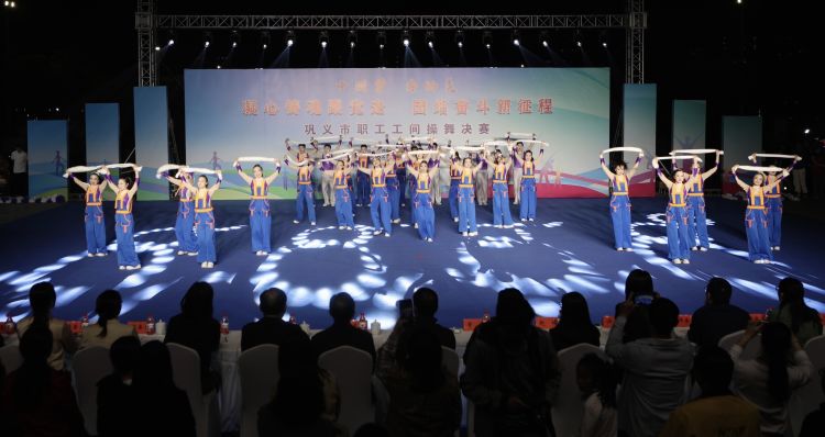 4月17日晚,“中国梦·劳动美——凝心铸魂跟党走 团结奋斗新征程”巩义市职工工间操舞决赛在市文化艺术中心北广场成功举办。市人大常委会党组成员、副主任、市总工会党组书记、主席范钦伟,市人大常委会党组成员、副主任白东升,市政府党组成员、副市长鲁尧,市政协党组成员、副主席王继锋等市领导及宣传部副部长、市融媒体中心主任席旭红,市总工会班子成员、各镇(街道)、市直单位和市总直属基层工会主席和19支队伍参加活动。