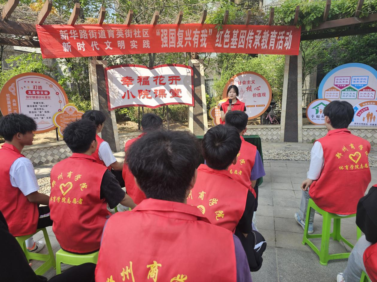为引导青年人在实践中弘扬主流价值,提高精神境界,更好地践行“强国复兴有我”的使命担当,近日,新华路街道育英街社区工会开展以"强国复兴有我 红色基因传承 ”为主题的宣传教育活动。