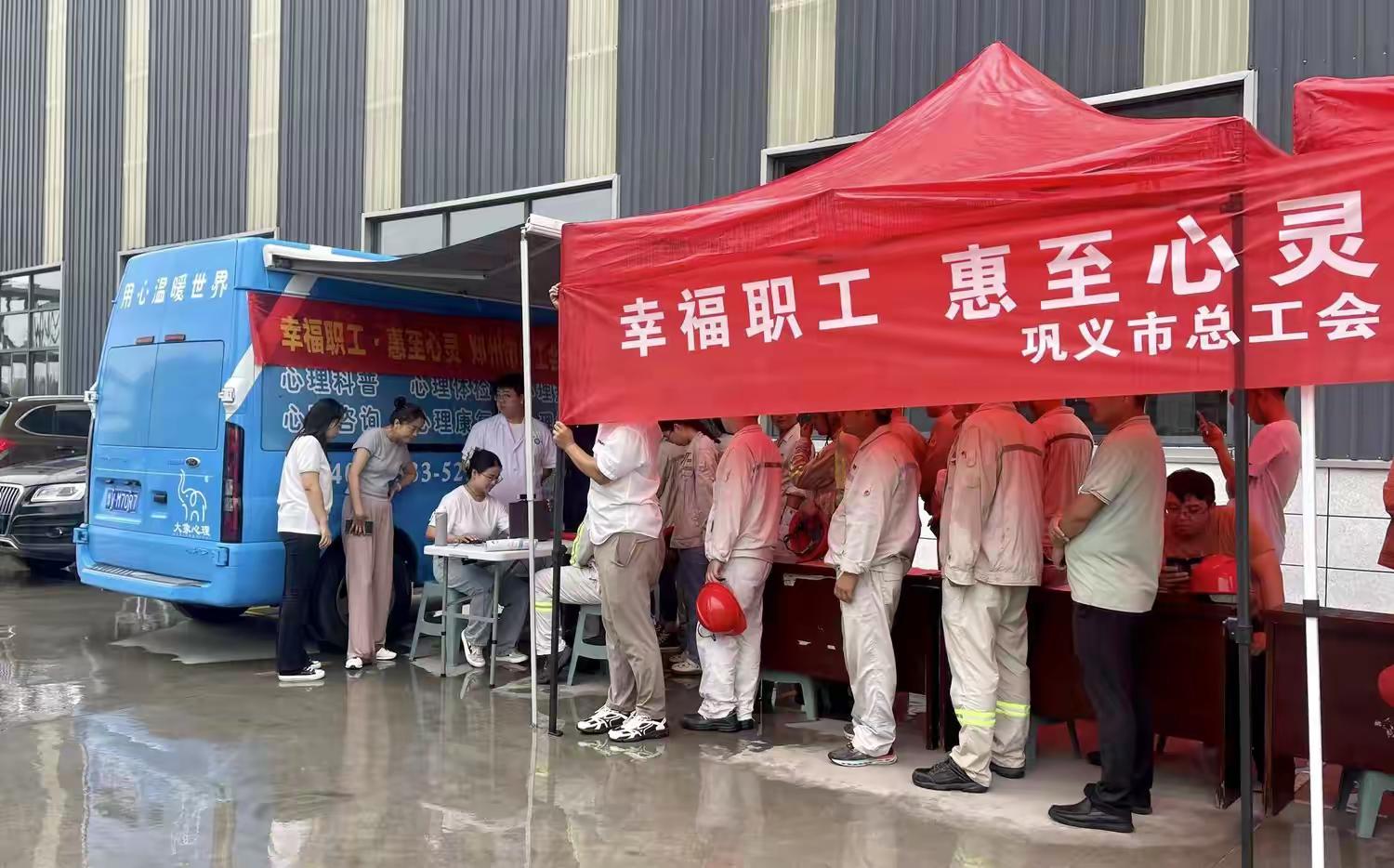 巩义市总工会为加强职工心理健康服务,提升服务效能,突出职工心理关爱工作的群众性、普惠性、公益性。7月5日上午,特邀郑州市总工会心理关爱大篷车来到巩义市豫联集团中孚高精铝材有限公司为职工进行心理体检活动。