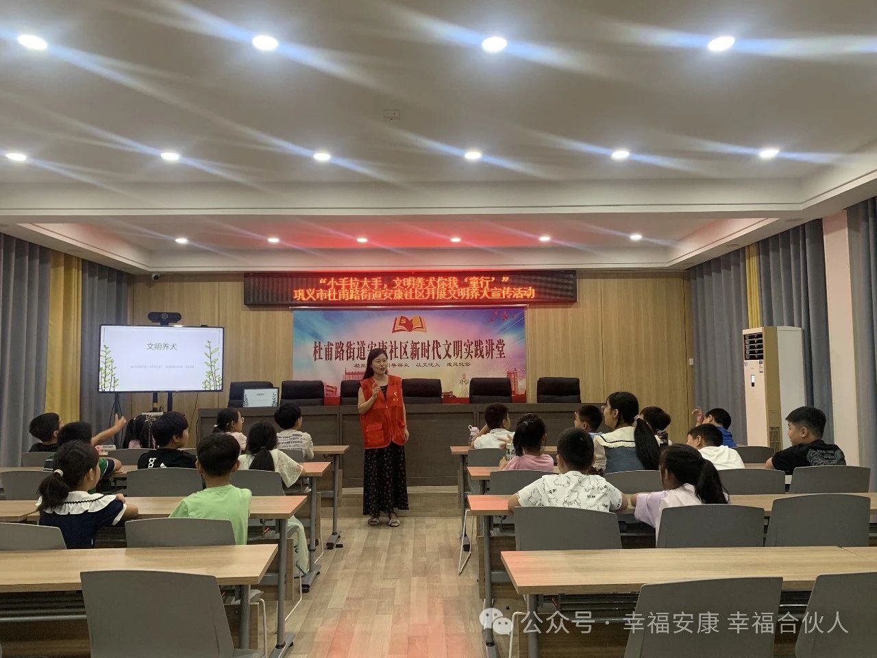 “小朋友你家养狗狗了吗”“知不知道家里养的狗狗也有身份证”“阿姨,狗狗还有身份证呀”“阿姨,阿姨我家的小狗妈妈还带着去打疫苗来”“狗狗身份证是啥样子呀”“带着狗狗出门要不要拴绳”……为了让孩子们从小形成文明养犬的意识,引导孩子们与狗的安全相处,7月19日,巩义市杜甫路街道安康社区工会带领孩子们上了一堂生动、有趣、活泼的文明养犬主题宣传活动。