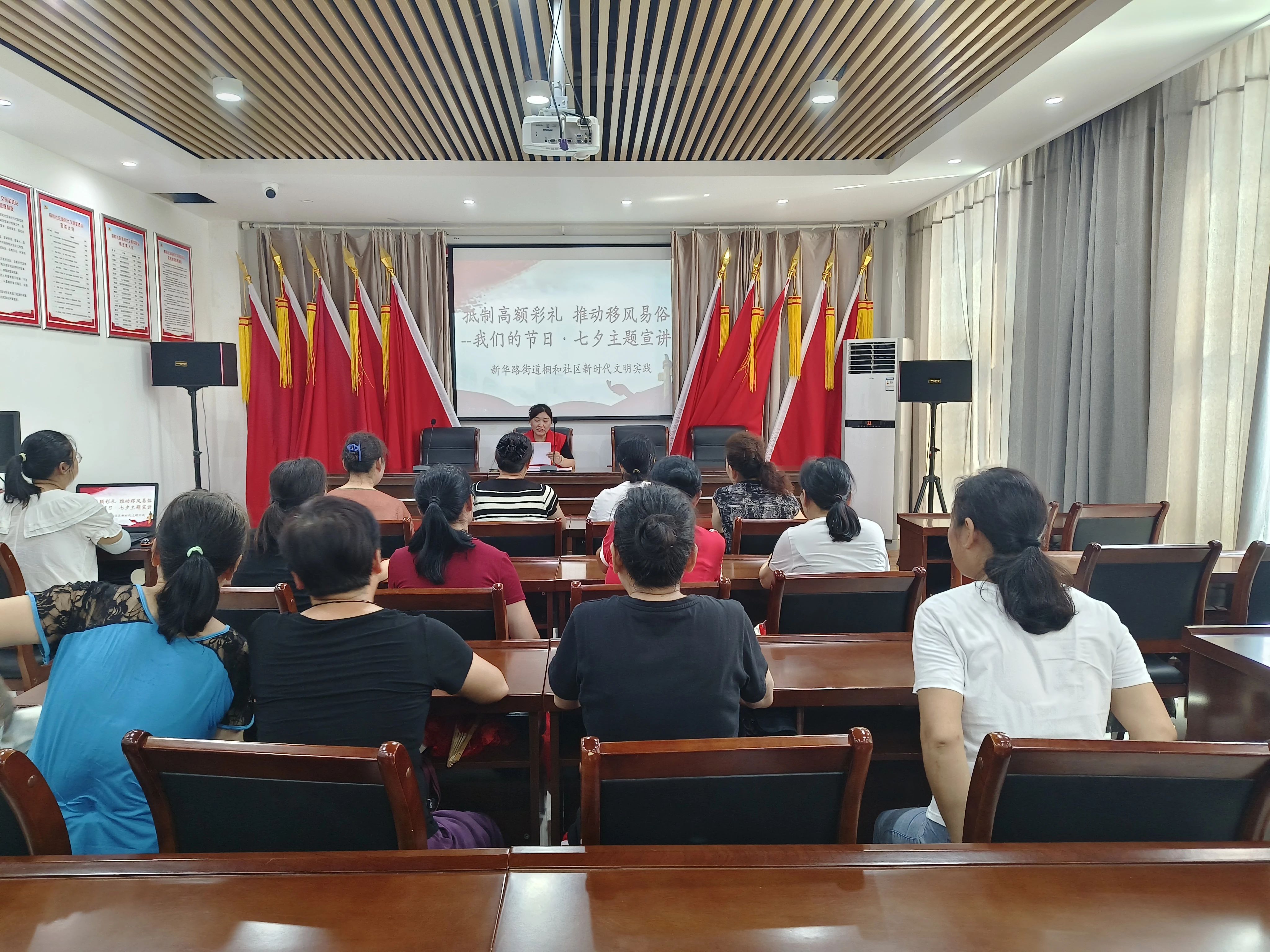 为培育和践行社会主义核心价值观,传承优秀传统文化,弘扬文明婚俗,引导居民树立正确的婚恋观、家庭观、价值观,8月5日,新华路街道桐和社区工会组织开展“抵制高额彩礼 推进移风易俗”“我们的节日·七夕”主题宣讲活动。