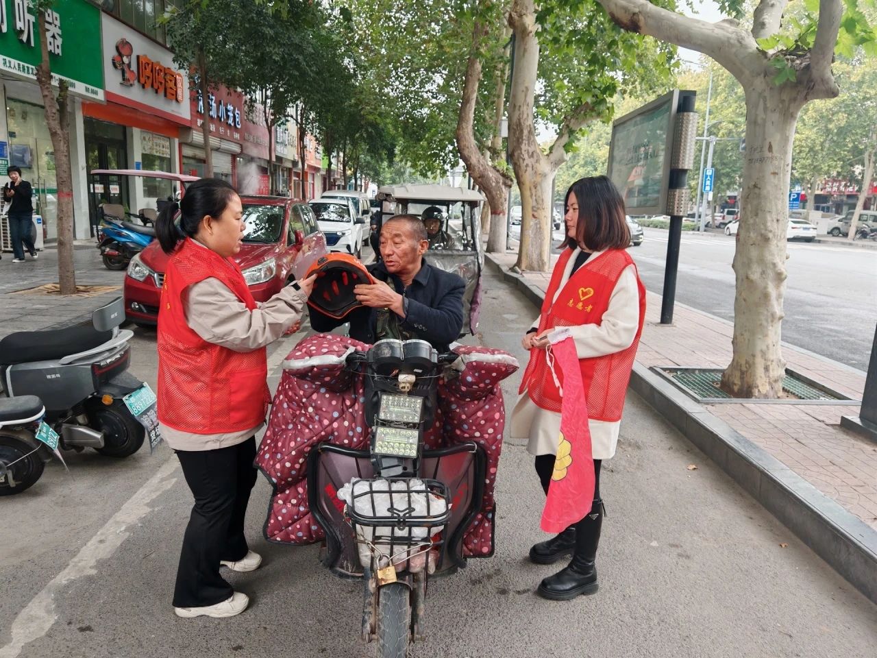 活动中,志愿者在辖区主要路口和生鲜超市门口向过往居民宣传交通安全知识,通过发放宣传资料、文明劝导等方式,向居民们详细讲解了不佩戴头盔可能带来的严重后果,强调了正确佩戴头盔的方法和注意事项,并提醒他们要时刻牢记交通安全,号召大家积极践行文明交通、自觉做到安全出行。