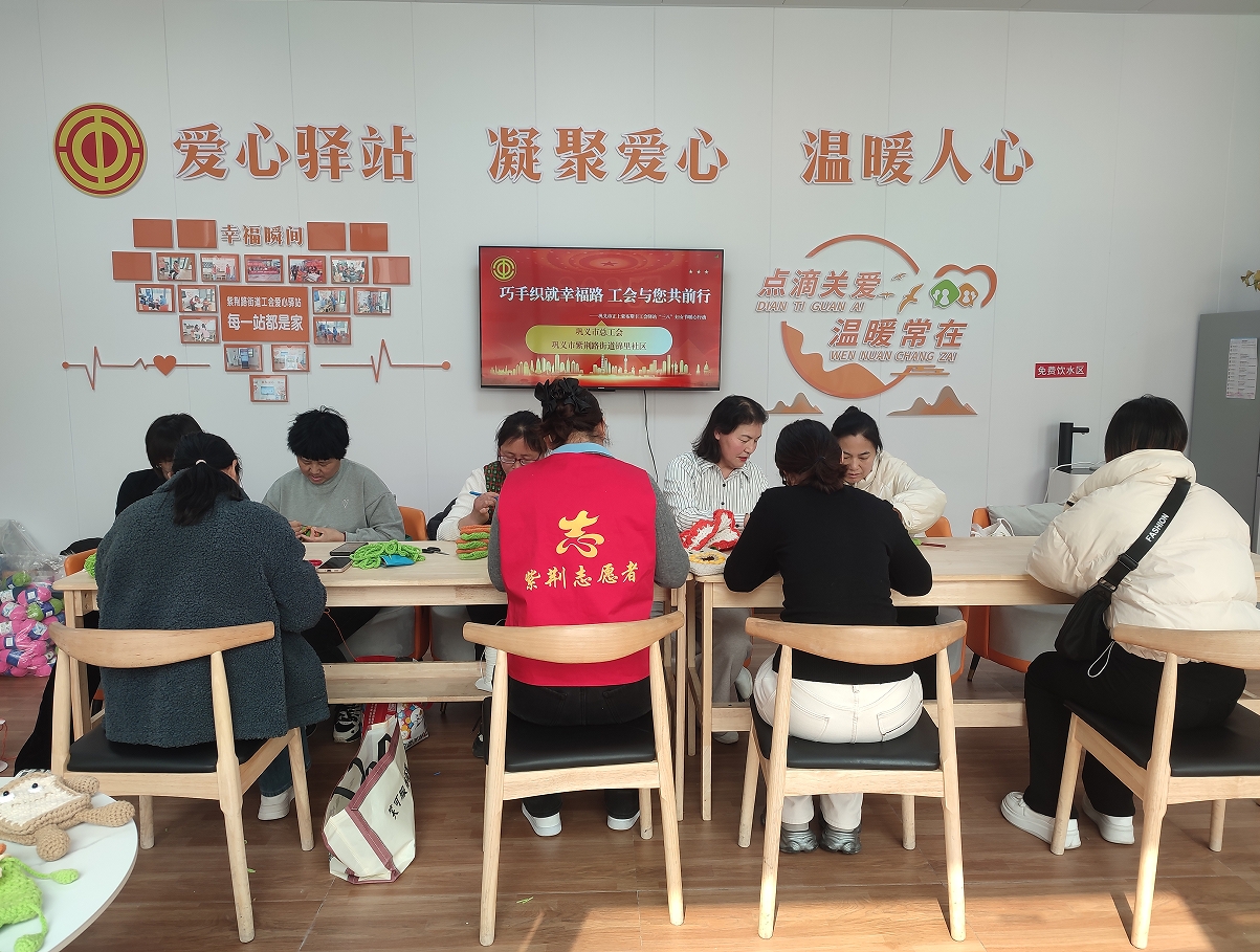 为庆祝第115个“三八”国际劳动妇女节,丰富女性朋友的精神文化生活,提升手工技能,3月6日上午,巩义市总工会联合巩义市紫荆路街道锦里社区,在正上豪布斯卡工会户外劳动者驿站开展了“巧手织就幸福路 工会与您共前行”钩织手工活动,吸引了辖区内下岗女职工、闲赋在家和热爱手工制作的妇女朋友踊跃参与。