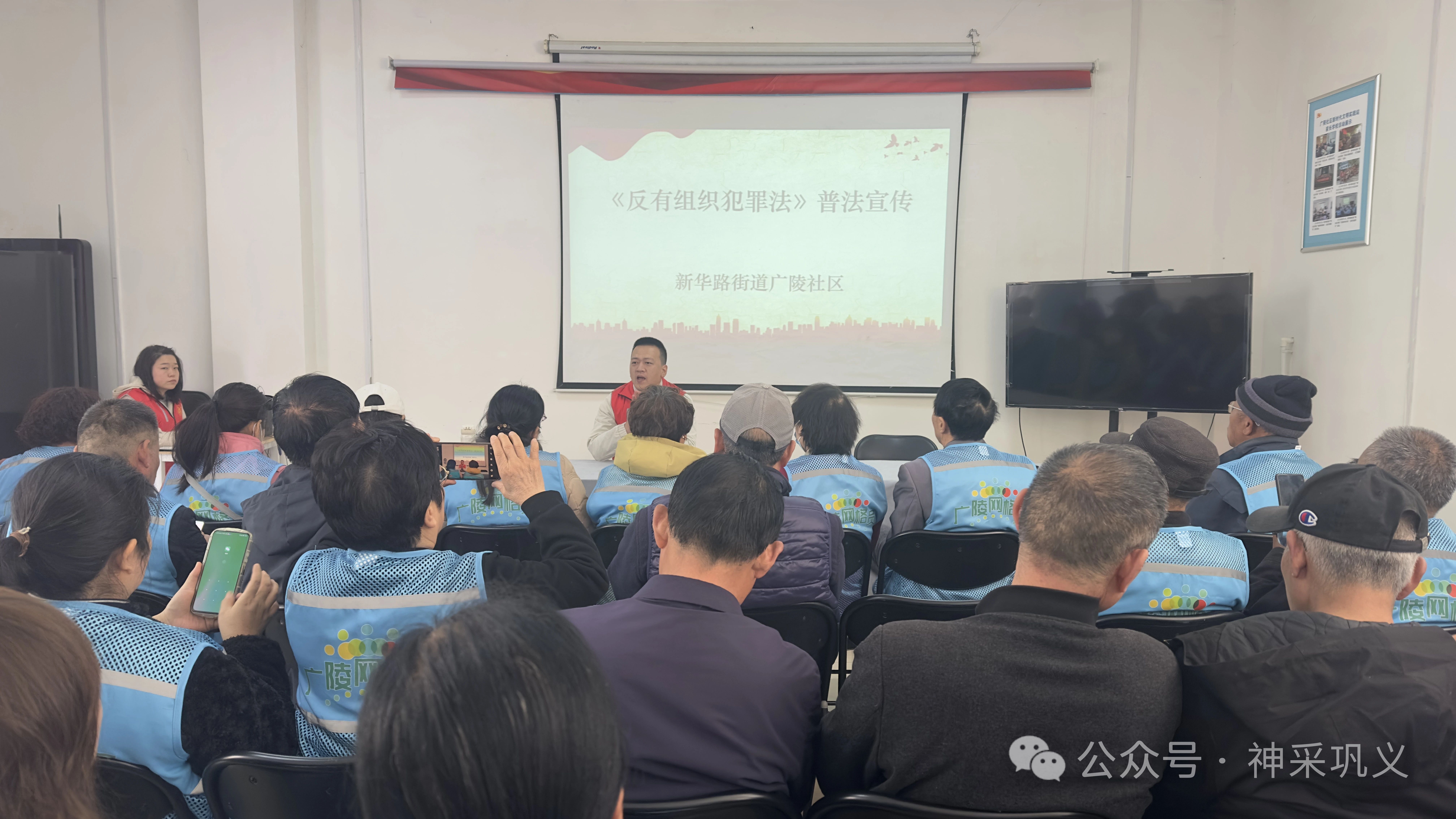 活动中,广陵社区充分发挥律师、党员、微网格员等人员力量,通过设立宣传点、发放普法手册等形式,向过往群众系统解读《反有组织犯罪法》的立法背景、核心要义和相关法律条文。同时通过律师开展“普法讲堂”的形式,聚焦群众关切,深入浅出地向居民讲解“依法从严惩治黑恶犯罪”、“严防黑恶势力深入基层”“防止未成年人遭受侵害”等内容,引导群众准确识别涉黑涉恶行为,学会运用法律武器维护自身合法权益,同时鼓励居民踊跃检举,提供揭发涉黑涉恶线索,用法律的武器保护自己。