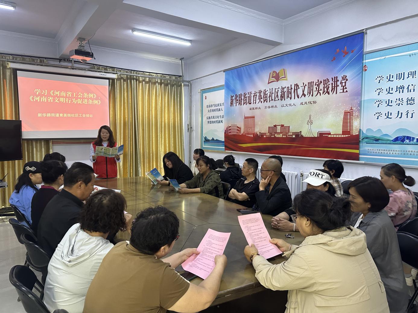 为进一步提升辖区职工对工会法律法规的知晓率,切实维护职工合法权益,5月8日上午,新华路街道育英街社区工会驿站开展《河南省工会条例》、《河南省文明行为促进条例》宣传页发放学习活动。