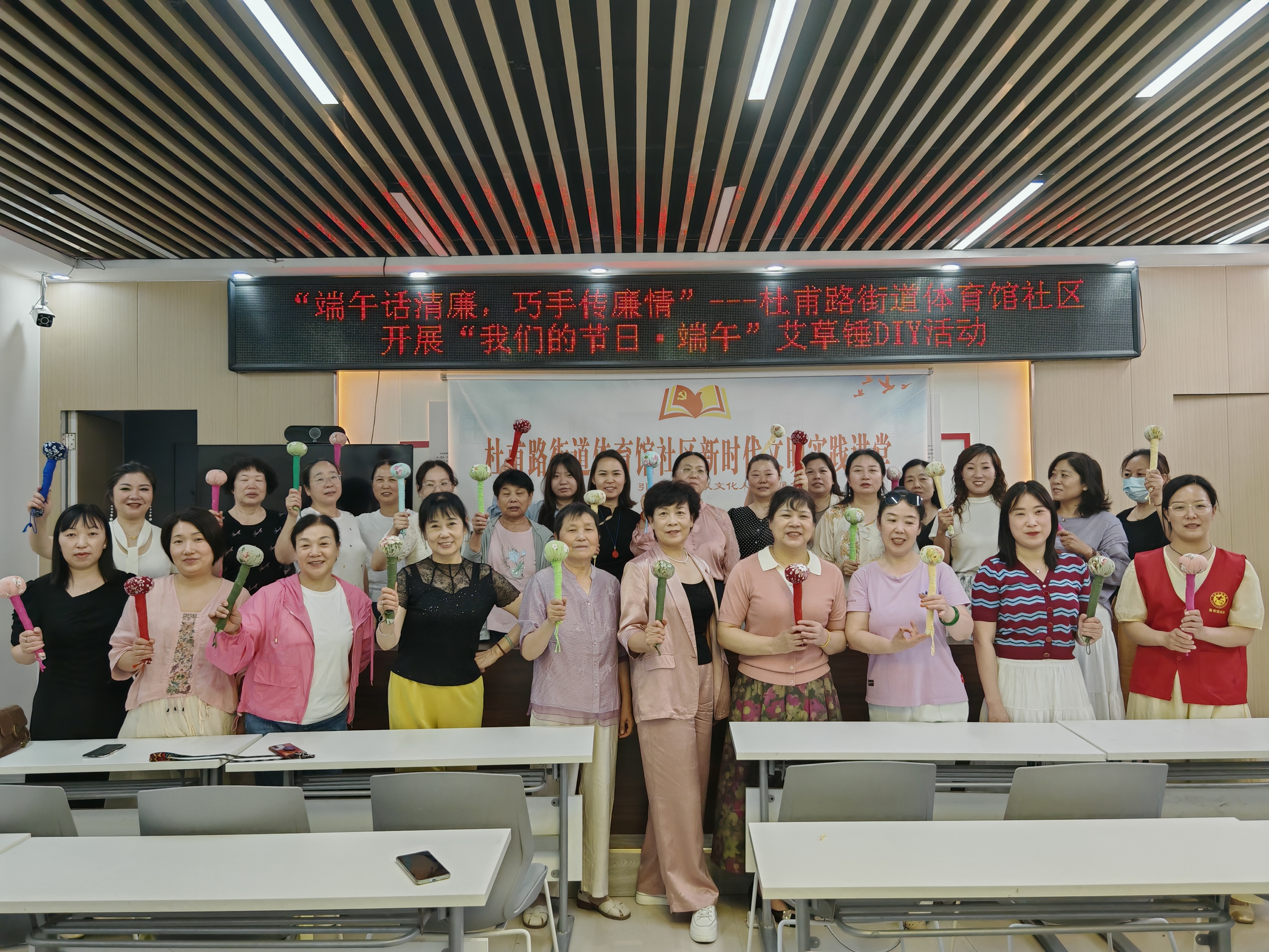 安康相伴,艾锤传情。为了进一步继承和弘扬中华民族优秀传统文化,将廉洁文化建设与端午文化深度融合,传递健康科学的生活理念,5月28日,在端午佳节即将来临之际,杜甫路街道体育馆社区工会驿站开展“端午话清廉,巧手传廉情”“我们的节日·端午”艾草锤手工DIY制作活动,邀请30余名辖区居民以及党员共同制作艾草锤,通过艾草锤手工制作,营造浓厚的节日氛围。