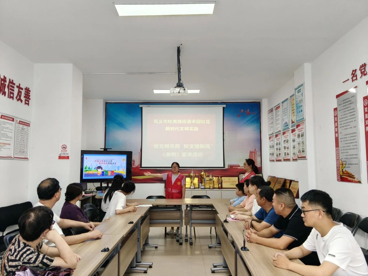 《郑州市文明行为促进条例》(以下简称《条例》)正式颁布实施七周年,为更好地坚持与践行条例,进一步提升居民文明程度,构建文明和谐的社区环境,大力培育和践行社会主义核心价值观。7月7日,巩义市杜甫路街道宋园社区工会开展“做文明市民 树文明新风”《条例》宣讲活动,在社区内营造出人人讲文明、守文明的浓厚氛围。