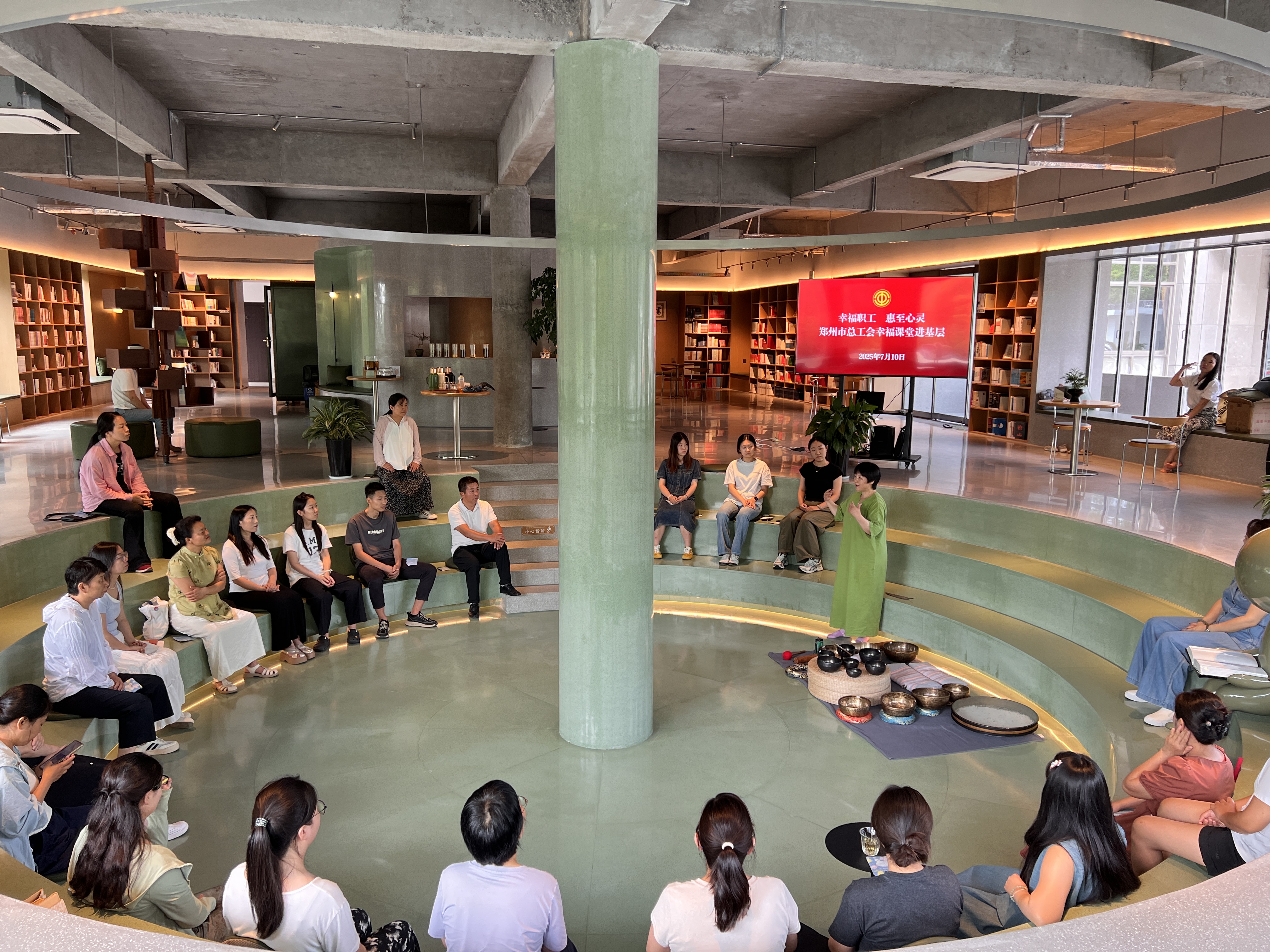 远离喧嚣,让音符治愈心灵。本次活动特邀高级颂钵疗愈师喜乐老师为大家做温情辅导。在课堂上,职工们暂时放下工作的紧张与生活的喧嚣,在专业导师的引导下,跟随音乐的节奏调整呼吸。颂钵发出的低频声波具有独特的共振效果,能深入放松身体与神经。随着颂钵声缓缓流淌,职工们闭上眼睛静静感受,紧绷的神经逐渐舒缓,身心仿佛被温柔包裹。这种结合声音疗愈的方式,为职工提供了全新的减压体验。