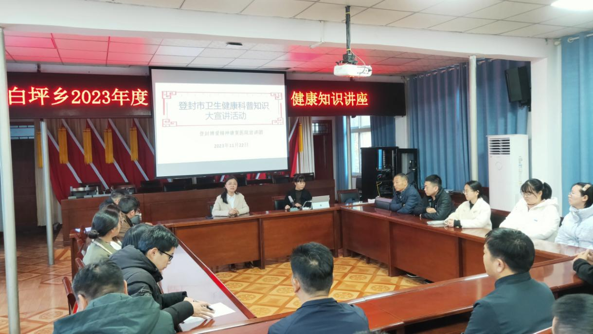 11月22日,登封市白坪乡工会开展关爱职工健康,卫生健康知识讲座进机关活动,邀请登封市博爱精神康复医院刘医生到白坪乡为20余名干部职工进行健康知识讲座。