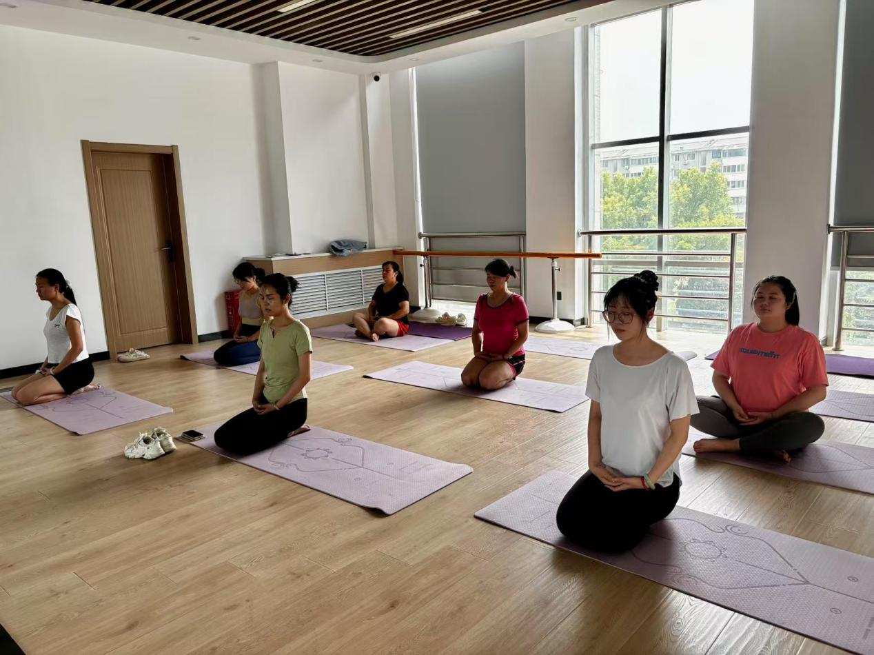 女职工们随着口令缓缓舒展身体,在一呼一吸间放松肩颈、拉伸腰背。在教练的引导下进行身体扫描,彻底释放积攒的压力,不少人表示“仿佛给身心充了一次电”。