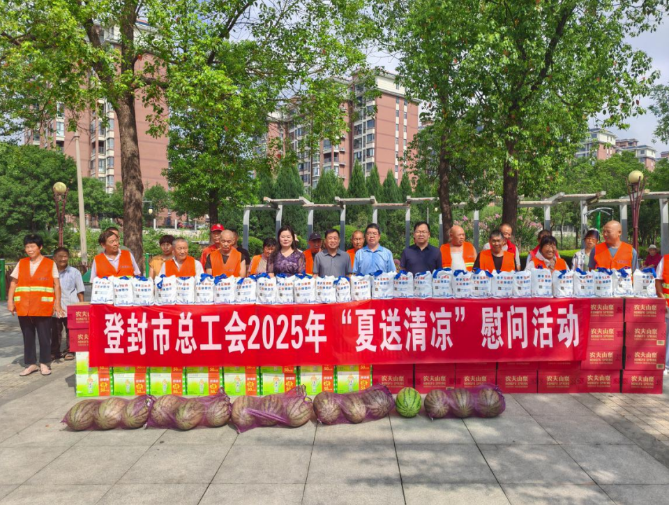 此次慰问活动分三组进行。慰问组先后到郑州升达经贸管理学院登封校区建设项目、登封市总医院暨公卫应急救治中心建设项目、登封文旅集团中岳景区管理部、国网登封供电公司、中岳办、交警队、郑州中瓷科技有限公司等地,为一线工人、环卫工人、执勤交警、景区工作人员等户外劳动者送去矿泉水、绿茶、西瓜等防暑慰问品。