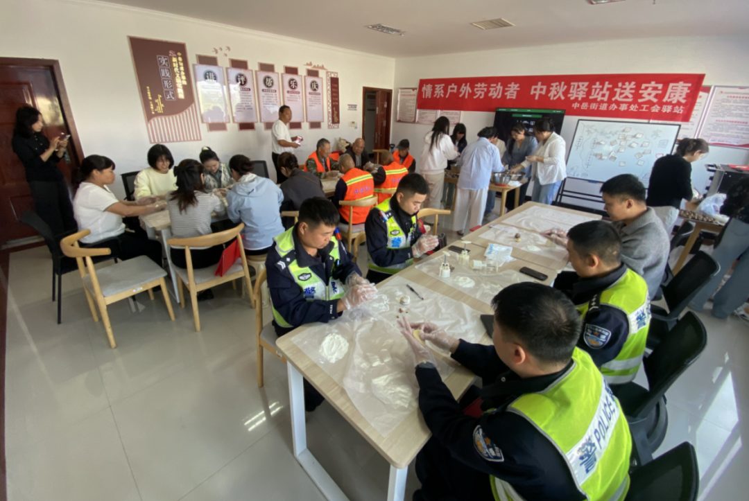 9月30日,中岳办工会驿站联合新时代文明实践所,精心策划了“情暖中秋,共制团圆” 主题活动,邀请辖区内环卫工师傅、交警同志共度中秋,用一场充满烟火气与温情的聚会,为他们送上别样的节日祝福。