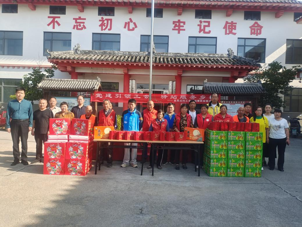 9月30日,北高庄村在文化广场开展 “情暖中秋,致敬户外劳动者” 关爱活动,环卫工、外卖员、快递员及户外劳动代表共约 30 人参与,活动全程温情满满。