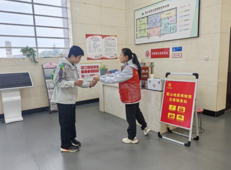 地质博物馆工会驿站志愿者为游客提供游览咨询、线路指引服务、免费开水、应急药包等服务。