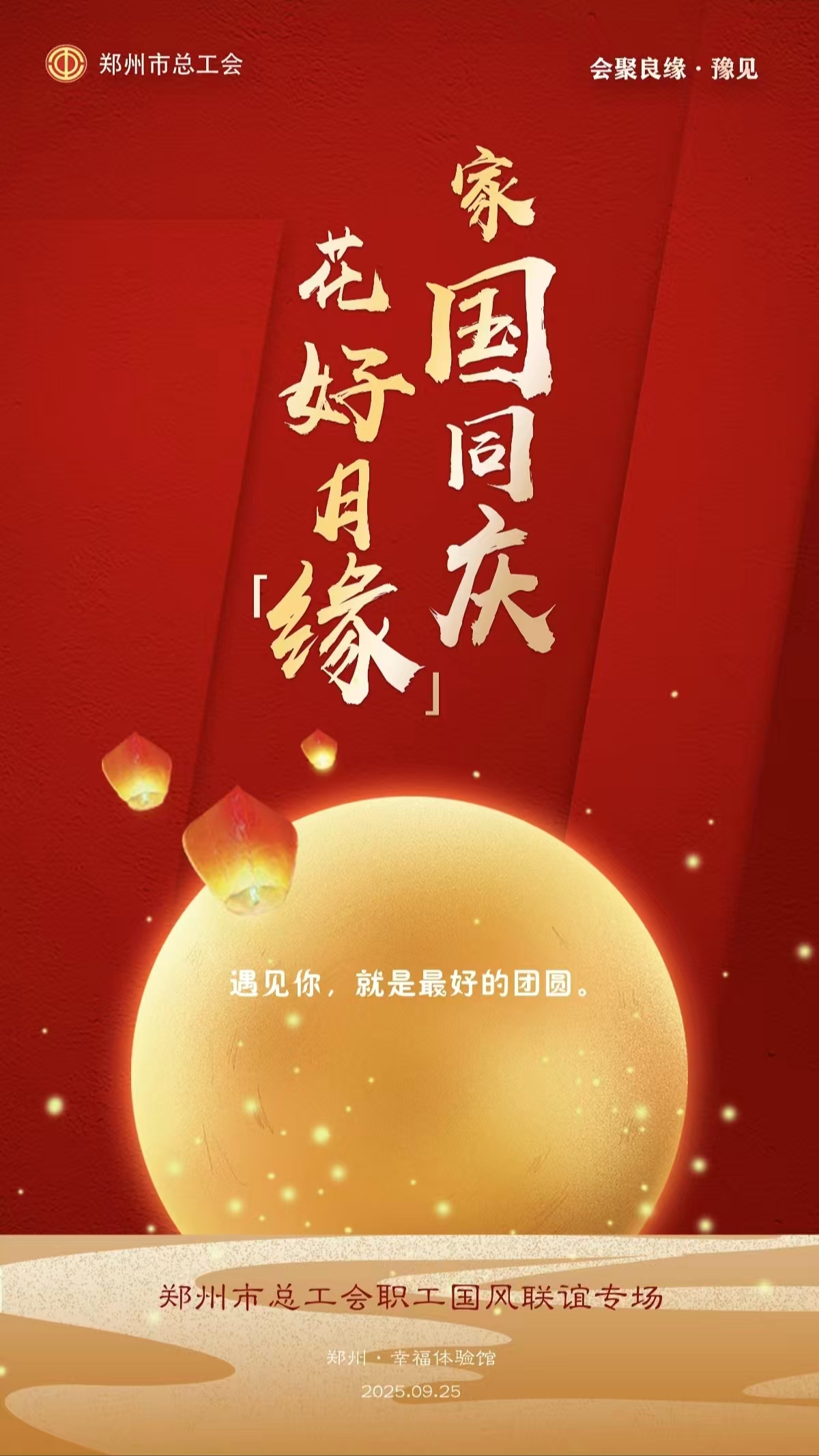 九州月明同此夜,家国同梦共长情。在祖国76周年华诞喜迎中秋之际,郑州市总工会2025年度浪漫IP【职工爱情基地】与你同心相伴,特别推出“家国同庆·花好月‘缘’”国风主题职工交友派对!9月25日(周四)晚7点半,欢迎来到市总工会幸福体验馆,身着传统服饰,体验雅致国风,共赴心动之约。