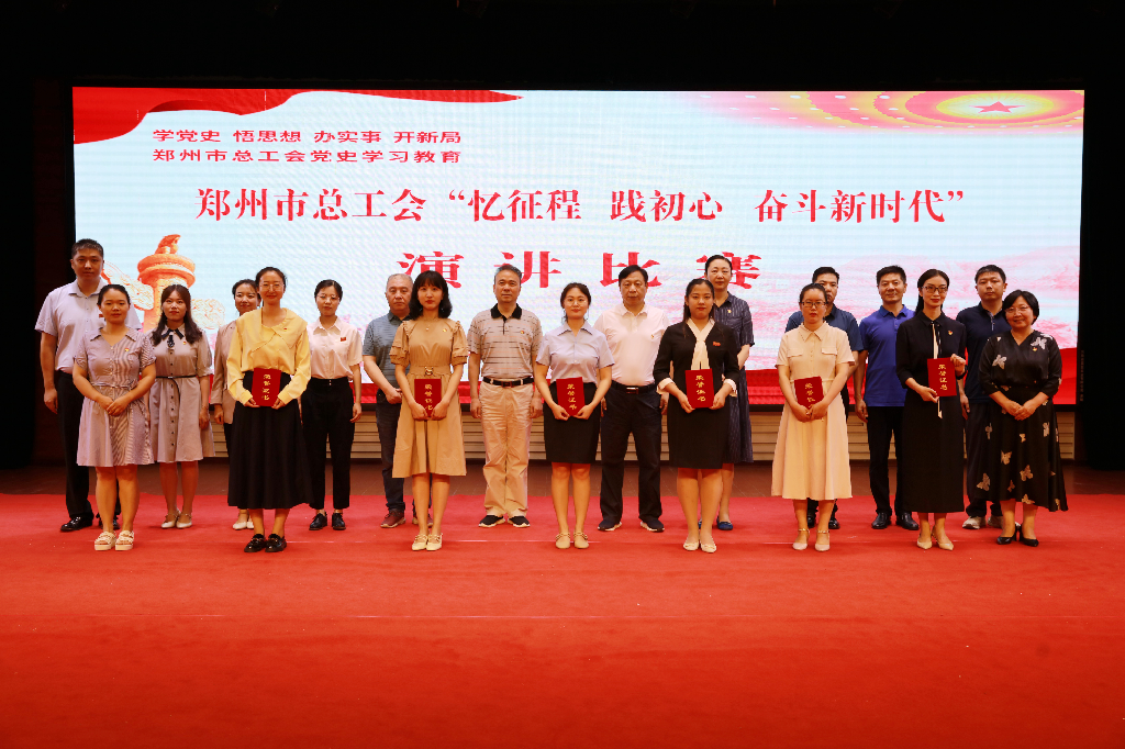 为庆祝建党100周年,巩固深化党史学习教育成果,进一步提高党组织的凝聚力、战斗力、号召力和创造力,激发广大党员爱党爱国热情,6月30日上午,郑州市总工会组织开展“忆征程、践初心、奋斗新时代”党史学习教育主题演讲比赛。市一级巡视员、市总工会党组书记、主席赵新中参加比赛活动并为获奖选手颁奖。