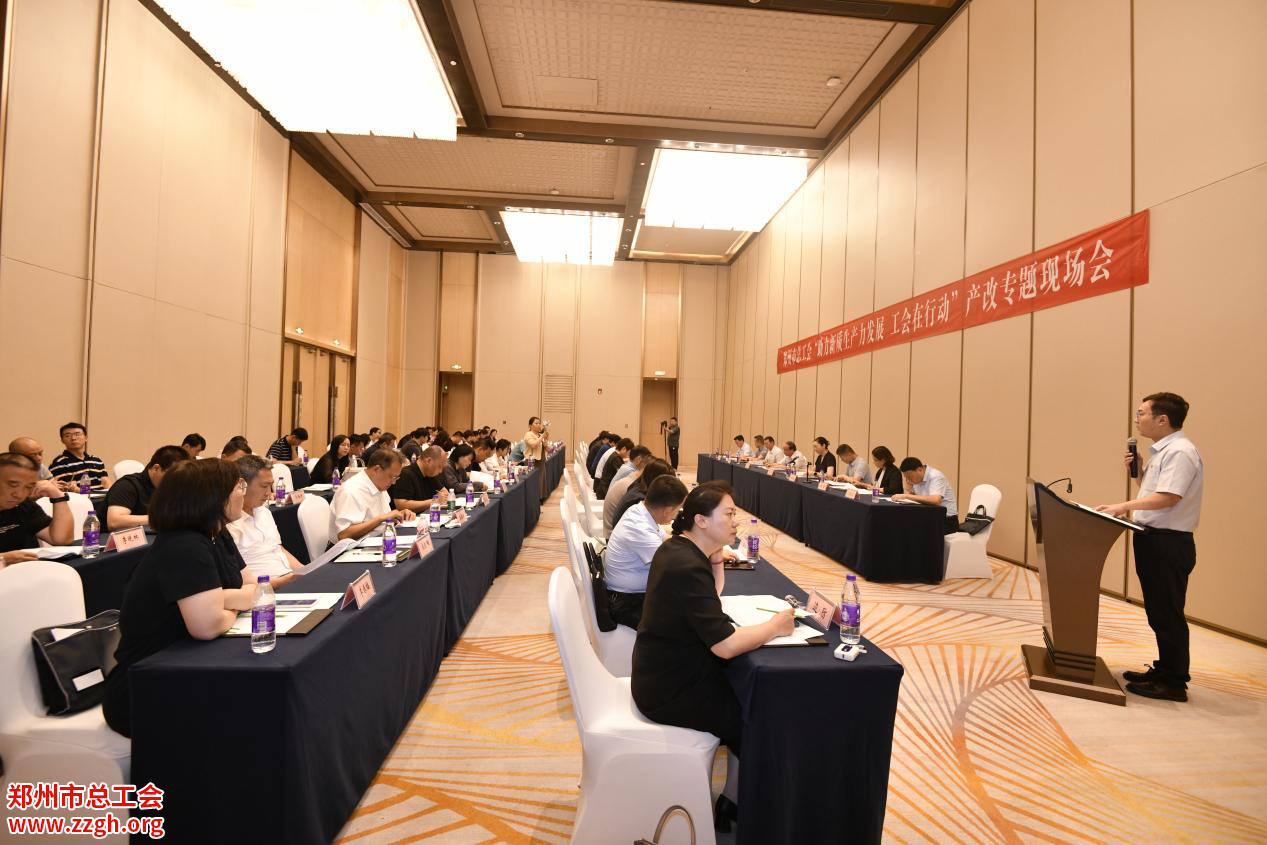 观摩参观后举行的2024年郑州市推进产业工人队伍建设改革工作推进会通报了全市产改工作推进情况,郑州宇通集团有限公司、巩义市、高新区工会相关负责人围绕产改工作的路径方法、亮点特色作交流发言,干货满满。