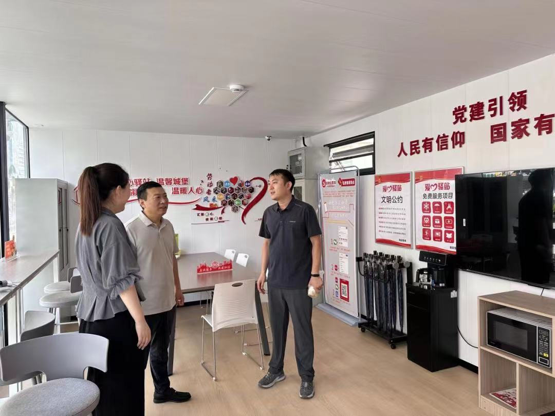 7月29日下午,郑州市总工会党组成员、副主席许振亚、市总工会保障部部长侯凯到管城区调研智能化工会驿站建设情况。管城区总工会副主席时英治陪同调研。