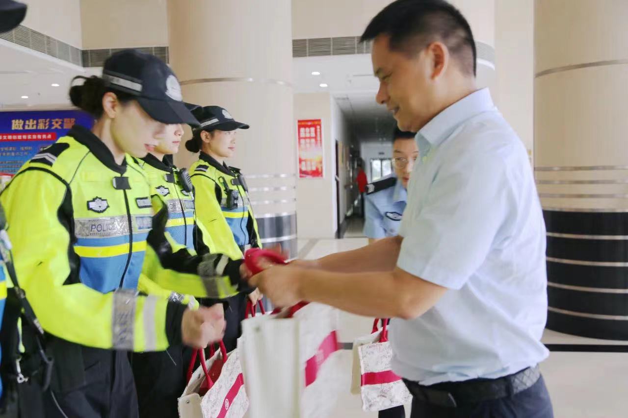 当前,郑州进入持续“高温模式”,炎热的天气给一线交通民辅警带来了巨大“烤”验。7月30日上午,市总工会党组成员、副主席李文平带领市机关工会、中国职工保险互助会郑州办事处相关负责同志来到郑州市公安局公安交通管理局,开展“互助关爱·温暖人心”夏日送清凉活动。公安交管局党委副书记、政委李彦君陪同慰问。