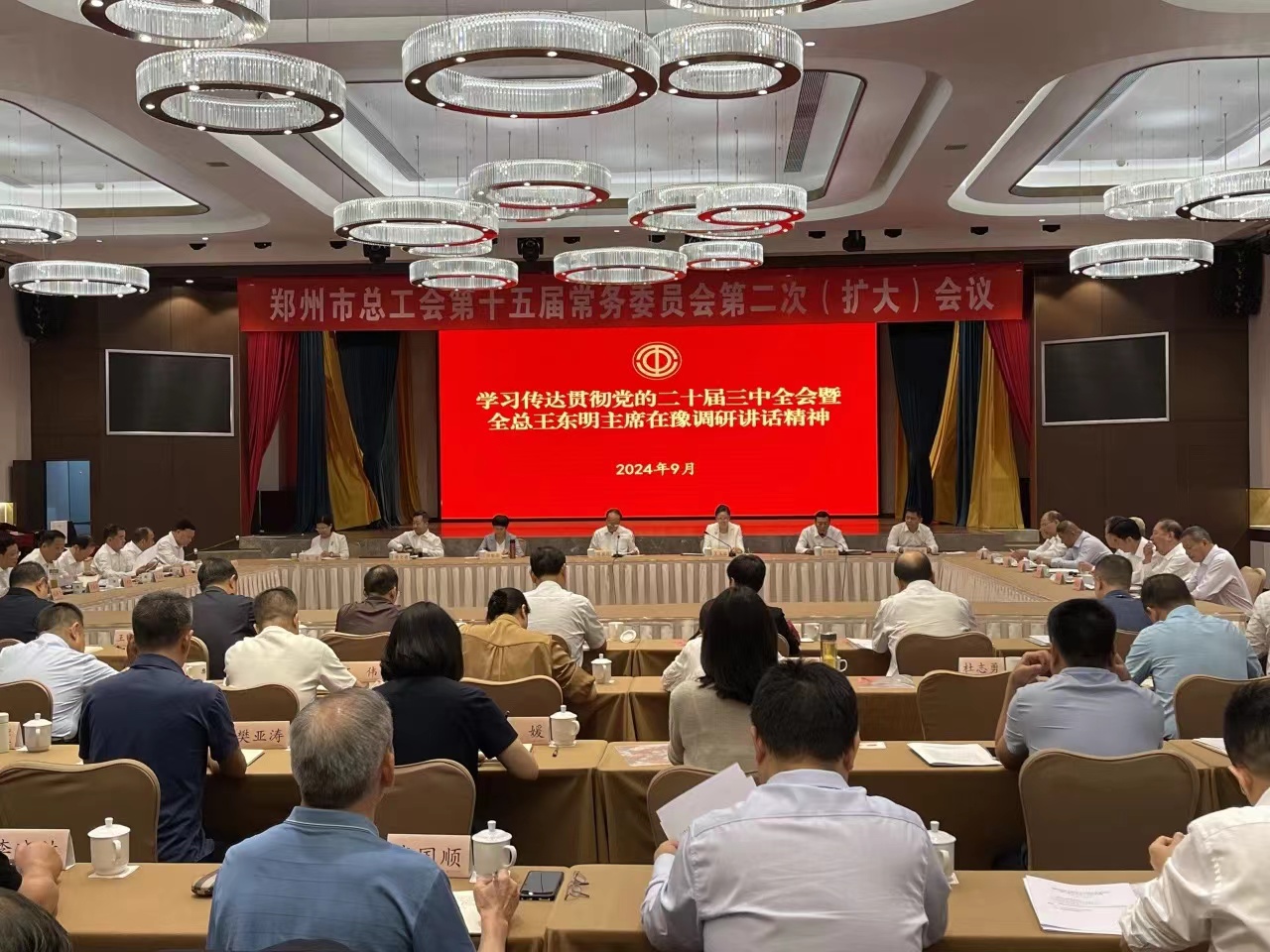 9月13日,郑州市总工会第十五届常务委员会第二次(扩大)会议召开,学习传达贯彻党的二十届三中全会暨全国人大常委会副委员长、中华全国总工会主席王东明在豫调研讲话精神,总结今年以来的工作,研究部署下一步工作。郑州市人大常委会副主任、市总工会主席周亚民主持会议并讲话。市总工会党组书记、常务副主席王玉红作工作报告。