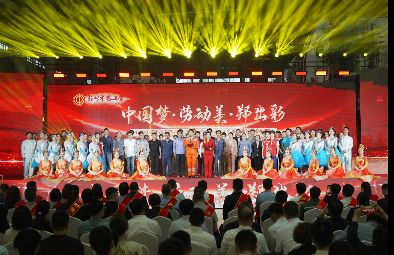 4月27日,“中国梦·劳动美·郑出彩”郑州市庆祝“五一”国际劳动节暨职工创新创造成果发布活动在中国中铁装备集团举办,来自全市的工会干部、劳模工匠和一线职工代表共聚一堂,欣赏这场视听盛宴,感受劳动者的荣光。