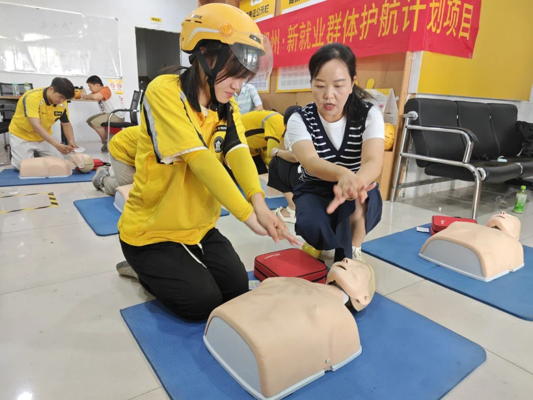 8月18日至22日,郑州市总工会“救在郑州·新业护航计划”项目与二七区总工会联合组织开展系列急救技能培训活动。活动聚焦外卖骑手、货运司机重点群体,累计参与职工44人,进一步增强了新就业形态劳动者的职业风险防范与应急处置能力。