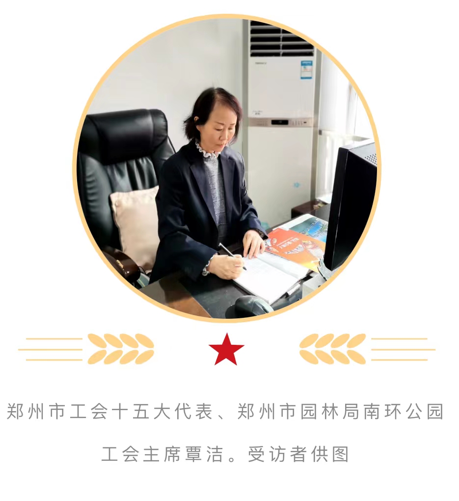 冬季的清晨7时,郑州市南环公园的职工们就迎着朝晖开始了忙碌的工作,郑州市工会十五大代表、郑州市园林局南环公园工会主席覃洁也早早来到单位,坐在办公室,她的心里装着、本上记着职工群众冷暖。