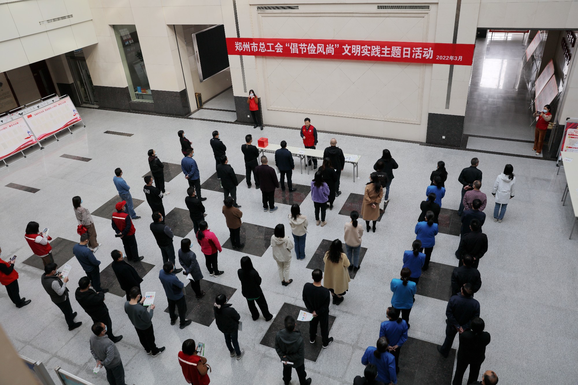 为深入贯彻落实习近平关于勤俭节约的重要指示精神,落实市委关于厉行节约、反对浪费的指示要求,3月3日,郑州市总工会在市职工之家开展了“倡节俭风尚”文明实践主题日活动。市一级巡视、市总党组书记、市工会主席赵新中参加活动。