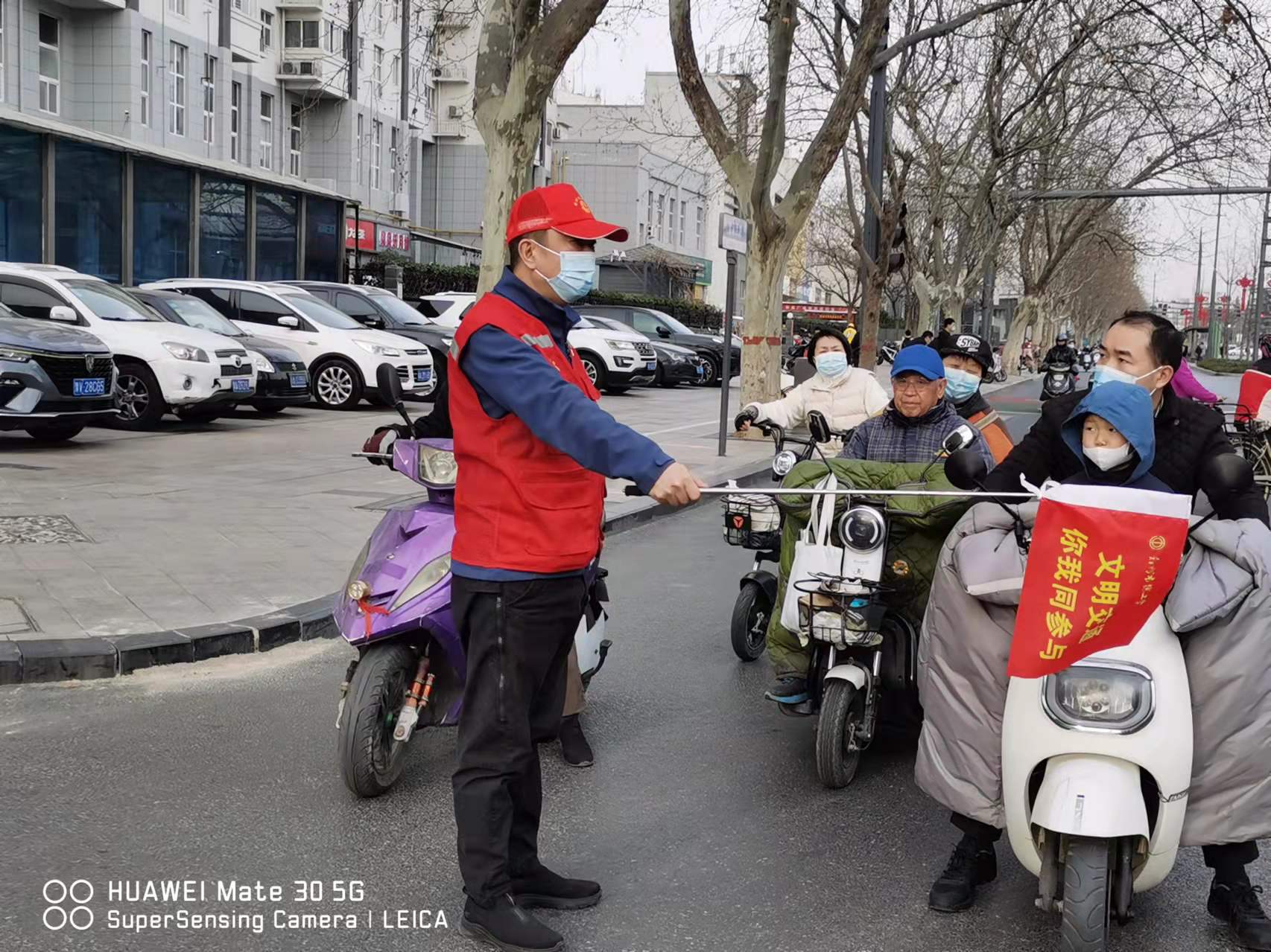 市总工会结合实际,组织志愿者对机动车乱停乱放、非机动车不按规定行驶、行人横穿马路、闯红灯等不文明行为及时进行劝阻,倡导市民群众遵守交通规则、引导和促进文明行为养成,传播文明交通理念,营造良好交通环境。