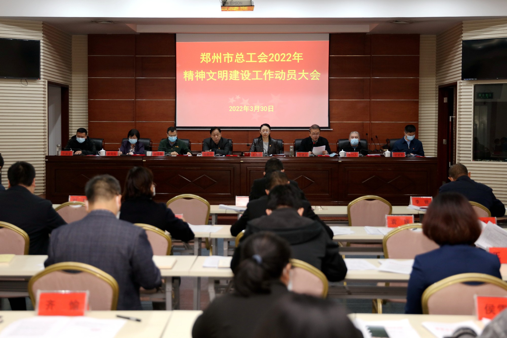 3月30日上午,郑州市总工会在一楼多功能厅召开了2022年度精神文明建设工作动员大会。会议由市总党组副书记、常务副主席王玉红同志主持。市一级巡视员、总工会党组书记、主席赵新中出席会议并讲话。