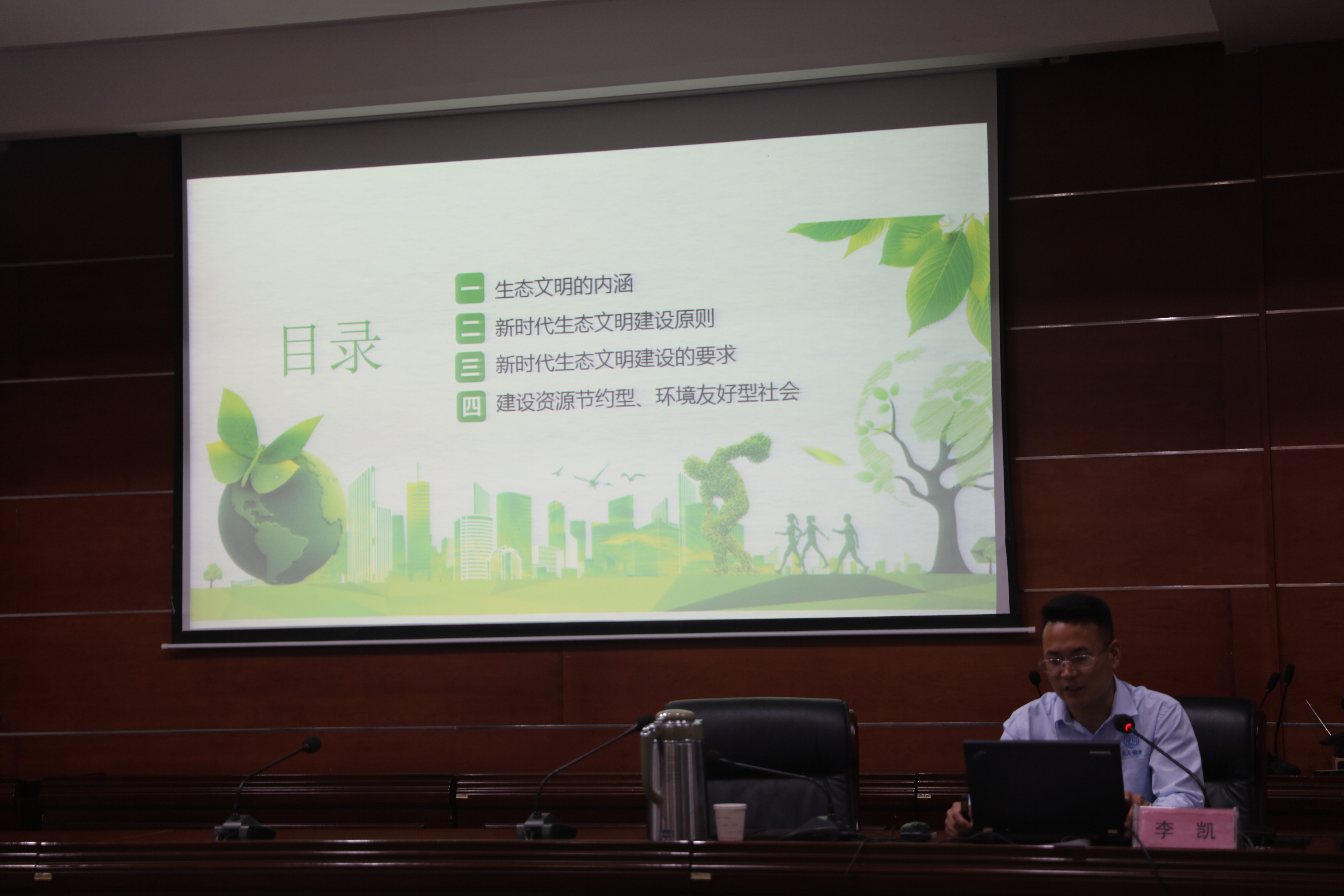 李主任坚持理论和实践结合,用学术讲政治,用案例讲思想。围绕生态文明的内涵,新时代生态文明建设原则,新时代生态文明建设的要求,建设资源节约型、环境友好型社会等四个方面深入浅出展开授课,引导大家认真学习和深入贯彻习近平生态文明思想,切实增强做好生态环境保护工作的自觉性和责任感。