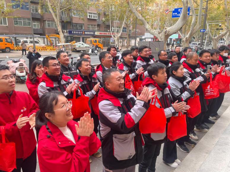 活动仪式恰逢2024年冬至前夕,冬至不仅是二十四节气之一,也是中华民族的传统节日,更承载着家人团聚、温暖相传的美好寓意。活动现场,宋主席及联通、顺丰工会的领导一起为一线职工发放了冬日暖心包,河南联通工会还贴心地为大家准备了饺子及自助餐,在这个寒冷的日子里,为活动增添了一份别样的温情,让“顺丰小哥”和联通一线员工深切感受到了浓浓的关爱。