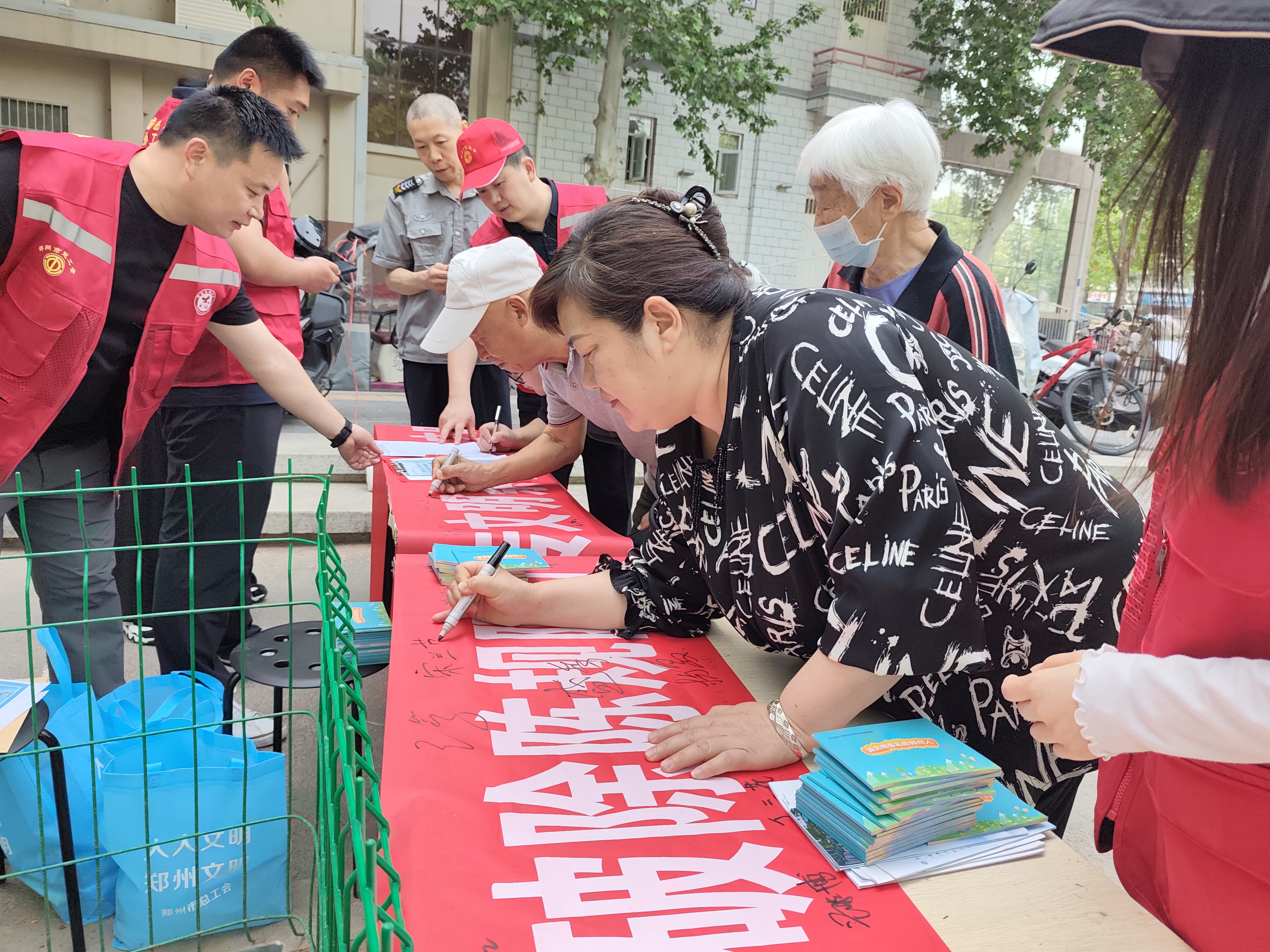 扫码答题环节成为活动亮点。活动主要围绕《郑州文明行为促进条例》精心设计题目,参与群众只需拿出手机,扫描专属二维码,即可进入答题页面。题目涵盖了公共秩序、文明出行、移风易俗等内容,参与者扫码即可开启“文明知识闯关”,寓教于乐的形式让文明理念深入人心,潜移默化中强化了文明意识,引导大家在日常生活中自觉行文明事、做文明人。为鼓励大家积极参与,答过题的居民还可以参加线上抽奖,职工群众在收获知识的同时,还能获取暖心奖品,现场洋溢着浓厚的学习氛围。“这个活动真的很有意义。”一位参与活动的环卫工人感慨道,“通过签名承诺,我感觉自己对抵制陈规陋习有了更坚定的决心;扫码答题也让我学到了以前不太清楚的文明条例知识,以后在生活里肯定会更加注意自己的言行。”