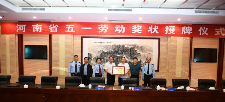 5月8日, 郑州市一级巡视员、郑州市总工会党组书记、主席赵新中,市总工会党组成员、副主席宋少丹,郑州市机关工会主任王银仓等为市税务局荣获“河南省五一劳动奖状”授牌。市税务局党委书记、局长张涛,市局党委委员、副局长冯霖参加了领奖活动。