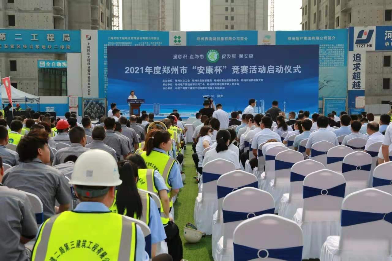 为深入贯彻落实习近平总书记有关加强安全生产工作的部署和要求,6月11日上午,由郑州市总工会、郑州市应急管理局、郑州市卫生健康委员会及郑州市消防救援支队主办,郑州地产集团、郑州西流湖控股有限公司承办的郑州市2021年“安康杯”竞赛启动仪式在中原新区庙王东安置区项目成功举行。郑州市相关组织部门、市总工会成员单位、地产集团、西流湖公司、各参建单位共300余人参加启动仪式。郑州市一级巡视员、市总工会党组书记、主席赵新中出席仪式。