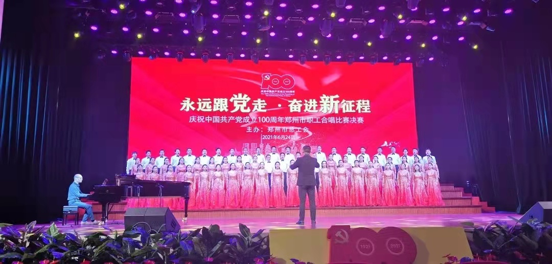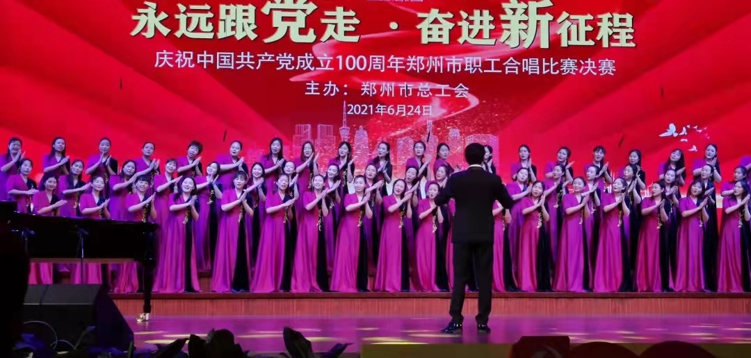 “永远跟党走 奋进新征程”庆祝中国共产党成立100周年郑州市职工合唱比赛是全市各级工会为落实“永远跟党走”--郑州市庆祝中国共产党成立100周年社区(村)群众合唱比赛工作部署专门组织的由各级工会和广大职工广泛参与的赛事。整个赛事分预赛、复赛、决赛三个阶段,历时一个多月。各级工会把这次职工合唱比赛作为庆祝建党100周年主题宣传教育活动的重要载体,及早谋划,强力保障,精心组织,广大职工踊跃参与、克服困难、认真排练,整个合唱比赛的过程成为群众自觉参与、自我教育、自我提高、同心同行、凝神聚力的过程。