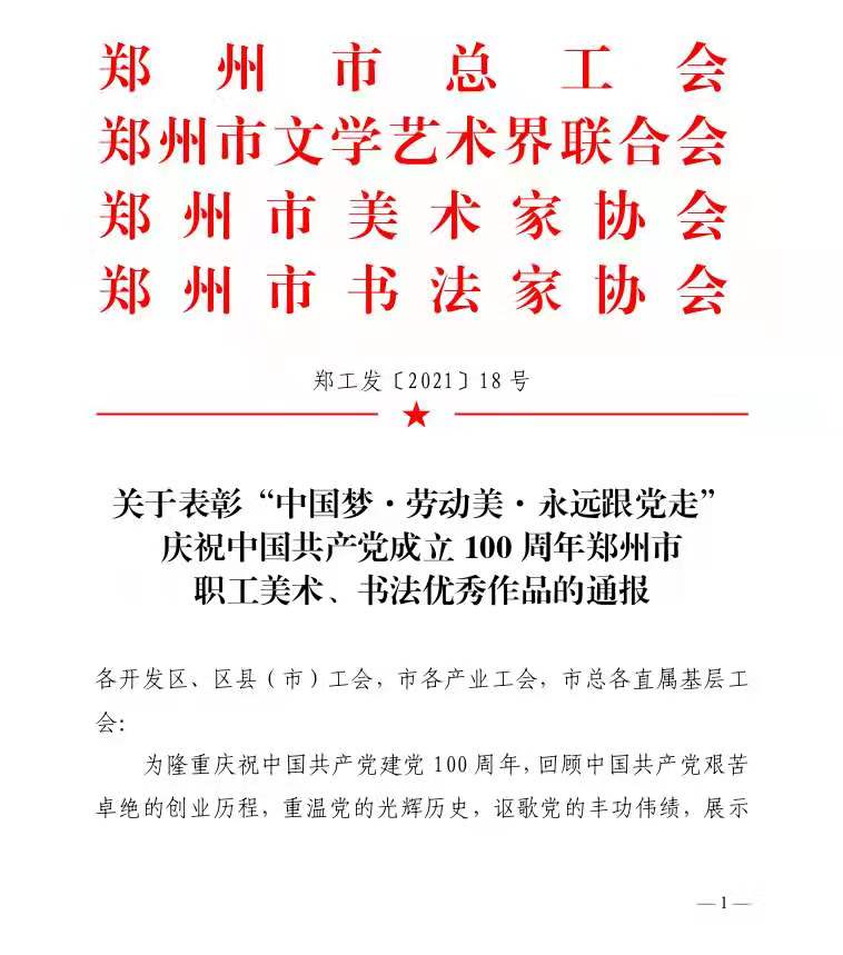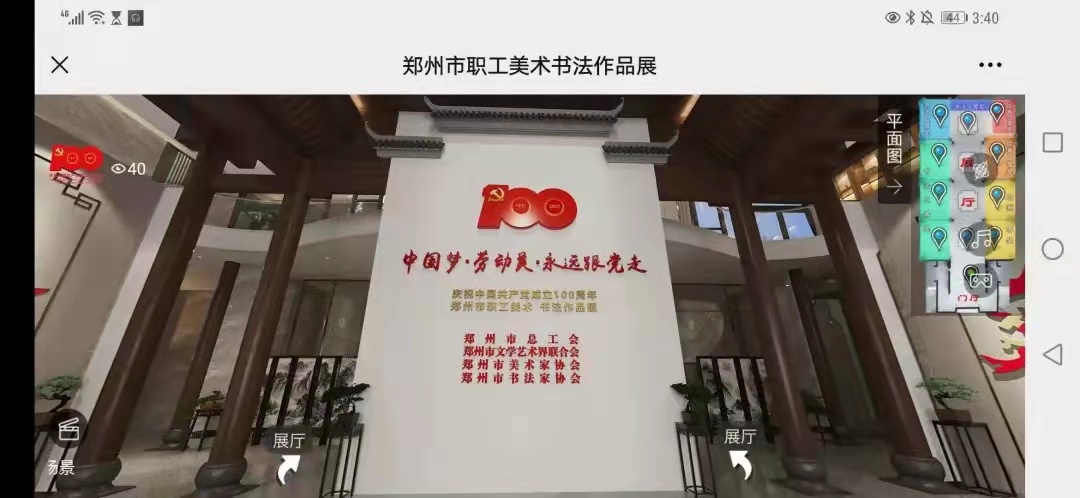 日前,由郑州市总工会、郑州市文学艺术界联合会、郑州市美术家协会、郑州市书法家协会联合开展的“中国梦·劳动美·永远跟党走”庆祝中国共产党成立100周年郑州市职工美术、书法作品展,以VR虚拟展馆的方式正式开展。