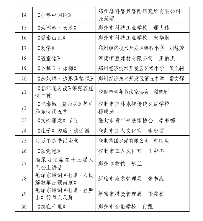 获奖名单(排名不分先后)