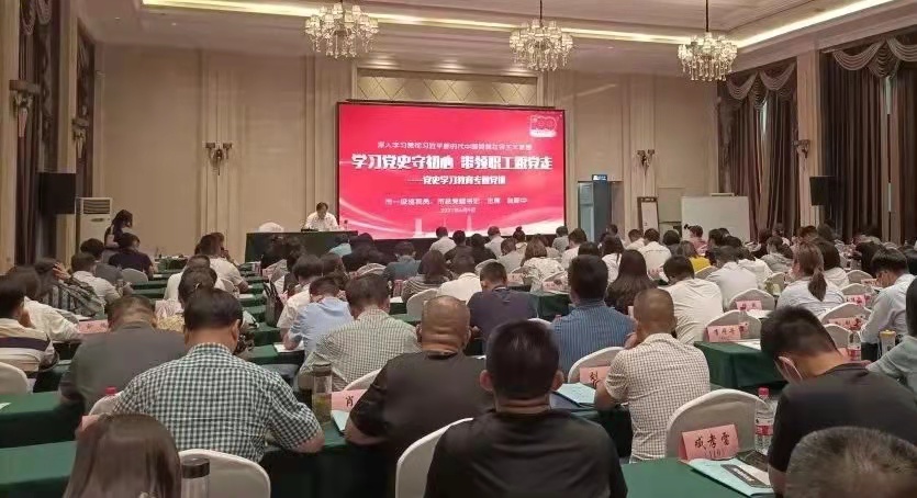 赵新中指出,今年是伟大的中国共产党诞辰一百周年,纵观百年历史,在每一个重大转折时期,面对新形势新任务,我们党总是号召全党同志加强学习,且每次学习都推动了党和人民事业实现大发展大进步。在庆祝我们党百年华诞的重大时刻,在全党集中开展党史学习教育,对于推进党的自我革命、永葆党的生机活力,意义重大。工运史是党史的重要部分,作为一名工会工作者,正确把握工人运动的特点和规律,筑牢中国共产党作为工人阶级政党的执政根基,以昂扬姿态奋力开启全面建设社会主义现代化国家新征程,很有必要。