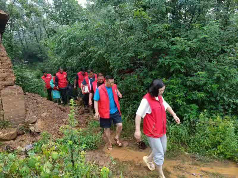 受连日来强降雨的影响,东张庄村人民群众生产生活和生命 安全受到严重威胁,7月22日,郑州市总工会驻村专班带领东张庄 村委党员领导干部挺身而上,救助受困群众,前往近日来受暴雨 袭击导致断水断电房屋垮塌道路受阻的受灾居民家中,实地查看 受灾情况,慰问受灾群众。因通往灾区道路严重受损,山体多处 滑坡,车辆无法通行,全体人员只能徒步前往。郑州市总工会驻 村专班负责人许振亚叮嘱大家一定要坚定信心,相信在党和政府 的帮助下,一定能够早日重建家园,恢复生产生活。同时要求, 同行的村镇干部要注意汛期安全,做好相关巡查和疏散以及下一 步安置工作,实现早日复工复产。